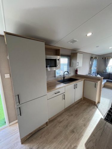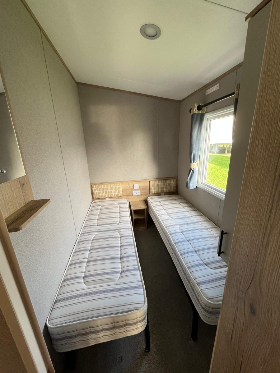 Pre-owned and in exceptional condition, this modern, light-filled caravan offers generous space for the whole family to relax while enjoying beautiful sea views.